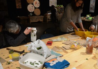 - Impressions textiles (batik à l’argile, ecoprint…),