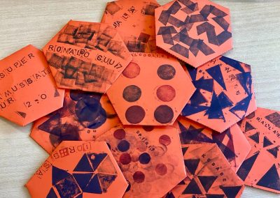 - Gravure taille-douce (gravure sur tetrapak, plexiglas, CD, carton) ou taille d’épargne (création de tampons-gomme, collagraphie, gravure sur mousse, polystyrène, carton, lino et xylogravure…),